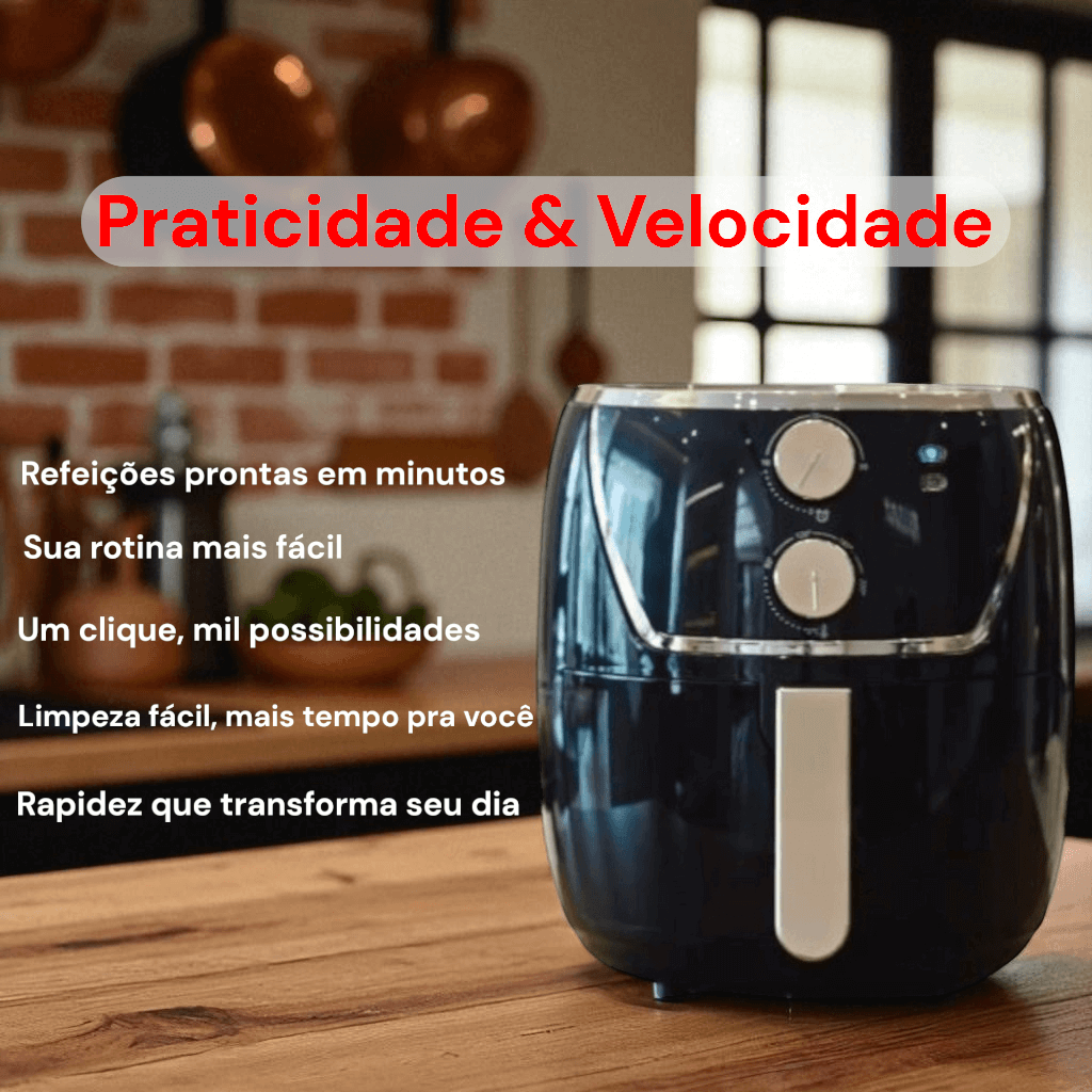 Sabor e saúde em minutos: Com a tecnologia de aquecimento rápido por circulação de ar quente a 360º, a Chef Express - Fritadeira elétrica multifuncional substitui o óleo quente pelo ar, reduzindo a gordura dos alimentos. Prepare batatas fritas crocantes, frango suculento e legumes grelhados com até 80% menos gordura, sem perder o sabor que sua família adora.