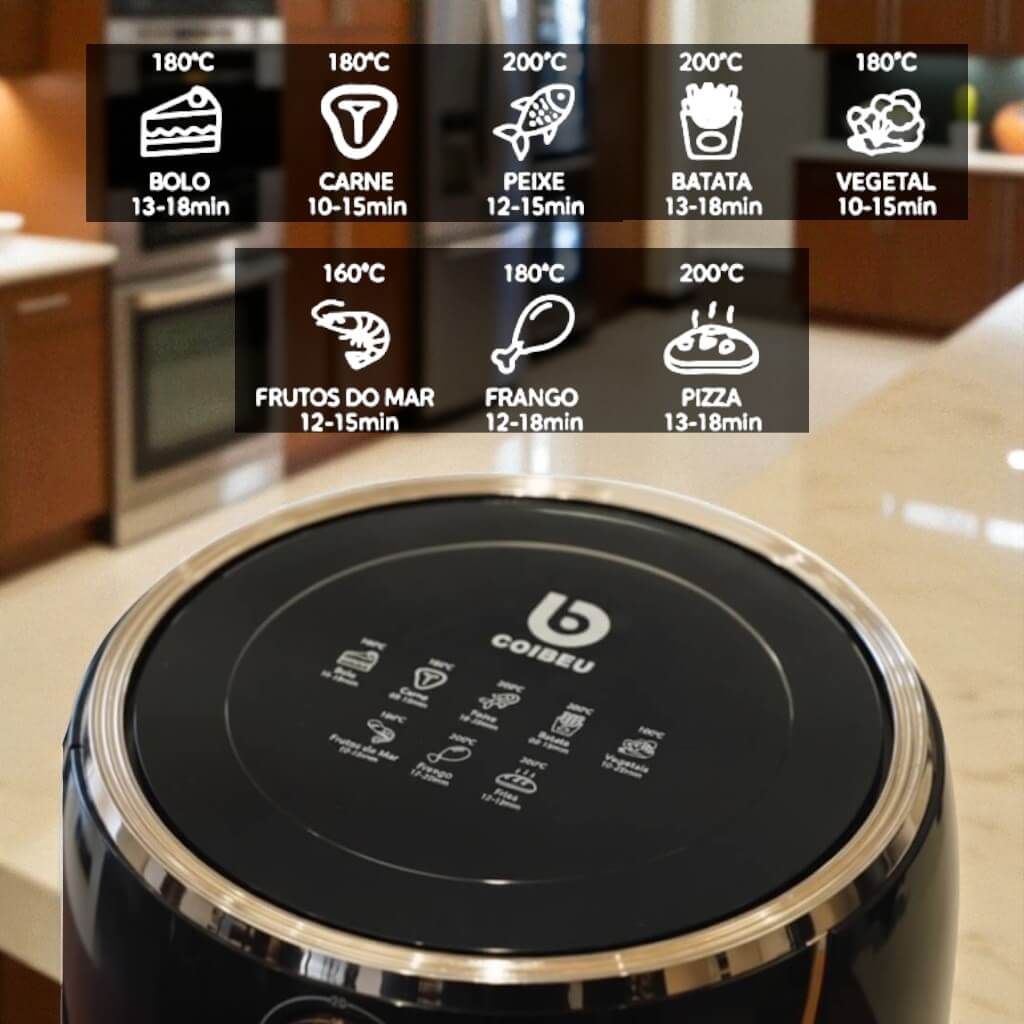 Seu novo braço direito na cozinha: A Chef Express - Fritadeira elétrica multifuncional é muito mais que uma fritadeira! Ela oferece funções como forno, micro-ondas, torradeira e esterilizador, permitindo que você prepare desde um bolo a um assado, tudo em um único aparelho. Com um menu pré-programado inteligente, você vai cozinhar com praticidade e precisão, mesmo nos dias mais corridos.