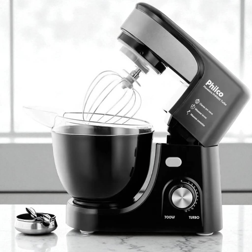 Potência de confeitaria em casa: Com 700W de potência e 12 velocidades, a Power Mix - Batedeira planetária Philco encara qualquer desafio. De pães e pizzas a cremes e claras em neve, você terá o controle total para alcançar a textura ideal em cada receita. Esqueça o medo de "queimar" seu aparelho com massas pesadas.