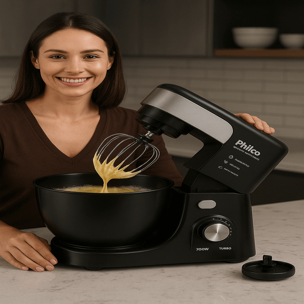Chega de se sentir frustrada. A solução para ter o controle total das suas receitas está aqui. A Power Mix - Batedeira planetária Philco é mais que uma batedeira, é a chave para você liberar o seu talento e ter orgulho de cada receita que prepara.